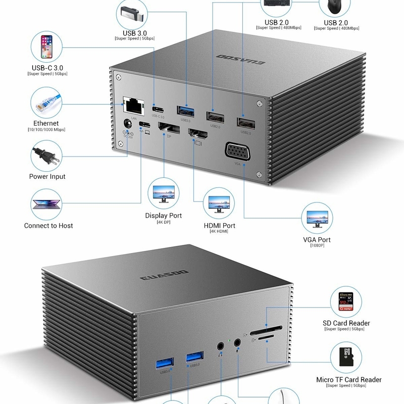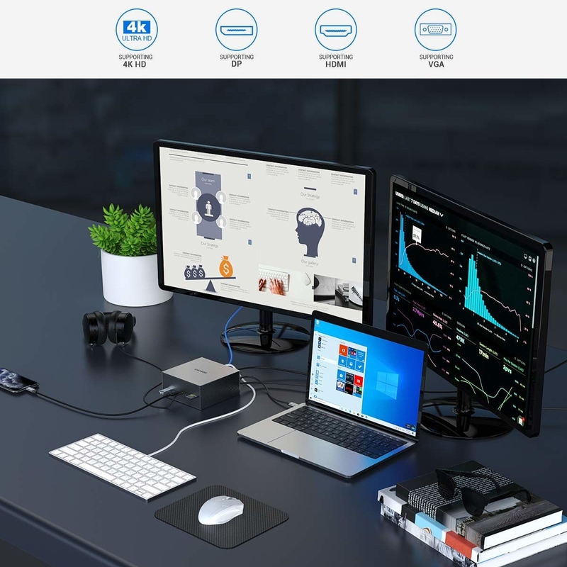 USB-C Docking Station adalah perangkat berkinerja tinggi yang menyediakan berbagai fitur untuk meningkatkan pengalaman komputasi Anda.